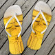 Chinelos com a imagem de um copo de cerveja gelada.