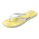 Este par divertido de chinelos apresenta pequenas e grandes fatias de limão amarelo-claro.