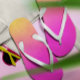 Este par divertido de chinelos é apresentado em uma lua amarela cor-de-rosa. A cor desaparece de rosa claro a laranja a amarelo. Clique em "Editar Design" para personalizar facilmente esses chinelos com um nome, texto inicial ou outro texto.