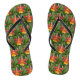 As orquídeas tropicais quentes decoram chinelos divertidos. Boa vibração de férias para diversão de verão!