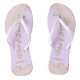 Estas belas chinelos de casamento são uma maneira excelente de obrigado e reconhecer sua Madrinha de casamento enquanto salva os pés dela ao mesmo tempo. Possui um design elegante com colchetes de rendas de ouro em um fundo de cor lilás, lavanda ou púrpura pálido e a inscrição de scripts coloridos em ouro de rico. O teste lê Madrinha de casamento com seu nome abaixo. Excelente caminho para a obrigado por fazer parte do seu dia especial, enquanto deixa seus pés descansarem também!