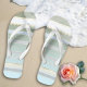Chinelos elásticos em azul verde pastel e cores de praia de cinza. As ondas têm um design de ouro estilizado (impresso).