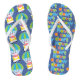 Um lado desses chinelos bonitos de novidade tem um padrão de imagem de uma vaca descendo os céus em um paraquedas. O outro lado tem uma tipografia colorida que repete "Não Tenha uma Vaca". As cores utilizadas incluem azul, ouro, vermelho e verde limão. Divertido, e meio louco! *Este design usa trabalho de arte de propriedade da Encore Software, Inc., que concede uso a seus licenciadores. Todos os direitos reservados.