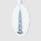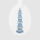 Ornamento artificial acrílico com clássico design de pagode chinês azul e branco, apresentado em frente e atrás. Criada pela artista Anne Harwell McElhaney também conhecida como Annechovie.