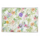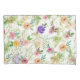 Este travesseiro Floral de Chique, a farda de travesseiro tem flores cor-de-rosa, flores amarelas, flores roxas e flores vermelhas num campo de folhas verdes.