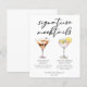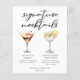 This dessert signature mocktails menu sheet features 2 sweet non-alcoholic drinks and their ingredients for your party or wedding bar. A Chocolate Martini and Lemon Drop drawing above your custom event text.