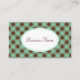 Um padrão de gingham verde-menta e castanho-chocolate enfeita esta cartão de visita profissional. Personalize esta cartão de visita para atender às suas necessidades. Use esta cartão de visita para uma pequena empresa, padaria, loja de doces, compro doce, chocolates, comidas gourmet. compro de sorvete, caterária, cama e café da manhã, creche, estilista, salão de cabelo, cosmetólogo, florista, consultas, etc..O design é da arte original.
