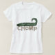 Um design do jacaré com texto que lê "CHOMP" em t-shirt do jacaré, em ímãs do jacaré, em etiquetas, em cartões, em canecas, e em mais.