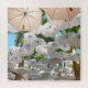 Eu não quereria fazer este quebra-cabeça fácil. Direito?! Esta foto dinâmica de guarda-chuvas suspendidos é de uma instalação da arte em Barbados. A repetição dos guarda-chuvas brancos cria o desafio perfeito para este quebra-cabeça de 676 partes. É você ascendente para ela?