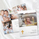 Cartões de agradecimentos fotográfico para enviar para sua família e convidados seguindo seu batismo ou batismo. O design tem uma foto na frente com uma cruz dourada e o seu obrigado manda uma mensagem com o nome do bebê, data e local no verso. Quando você abre a placa, há uma foto retrato na aba e uma colagem de mais 5 fotos de dentro. Suas fotos são exibidas em formatos verticais e paisagísticos. Se tiver algum problema com a colocação, tente recortar a foto para retrato/paisagem e carregue-a novamente.