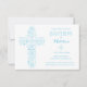 Este é um na moda e elegante convite 3,5x5 Christening ou Baptismo com uma cruz azul desenhada e um fundo branco. Cartão perfeito para uma ocasião sagrada e religiosa, a cor de fundo pode ser alterada para seu gosto e o texto é personalizável.