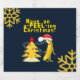 Funny yellow banana with Santa hat and yellow Christmas tree on ark blue background