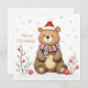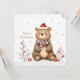 "This adorable illustration features a cheerful brown teddy bear wearing a festive red and white Santa hat and a cozy striped scarf. The bear has rosy cheeks and a soft, plush look, making it incredibly inviting. This charming graphic is perfect for children's Christmas apparel, holiday cards, ornaments, cozy blankets, or any product celebrating the sweet and simple joys of the holiday season."