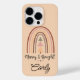 Capas de iphone de Natal em boho beige e arco-íris, elegantemente adornada com seu nome de roteiro.