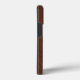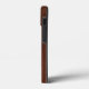 Um estilo moderno de aplique de cromo prateado náutico em um acabamento de madeira de mogno molhado para uma capa de telefone personalizada que todos a bordo ou fora do barco vão gostar.