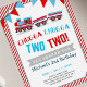 Celebre seu pequeno aniversário de um segundo com nosso chugga chugga dois Convites de festas de trem. Este belo convite de aniversário de trem apresenta um trem em um design vermelho, cinza e azul. O tema de cor é totalmente editável! clique em "editar fundo" para alterar o tema de cor. Este convite para treinamentos escolares é perfeito para a segunda festa de aniversário do seu filho.