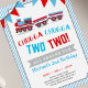 Celebre seu pequeno aniversário de um segundo com nosso chugga chugga dois Convites de festas de trem. Este belo convite de aniversário de trem apresenta um trem em um design vermelho e azul. O tema de cor é totalmente editável! clique em "editar fundo" para alterar o tema de cor. Este convite para treinamentos escolares é perfeito para a segunda festa de aniversário do seu filho.