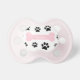 Você ama seu cão, e assim que faz seu bebê. Mostre seu orgulho do animal de estimação com este pacifier customizável cor-de-rosa do osso de cão com impressões do cão. Aperfeiçoe para seu bebé.