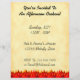 Um modelo de folheto personalizado com letras retrorreflectoras personalizadas e o CHURRASCO de palavras em letras flamejantes ocidentais com arte gráfica de chamas vermelhas e laranja na parte inferior do design num fundo de pergaminho faux. O reverso tem espaço para suas datas de convite de festas e muito mais. Personalize-o para adicionar mais texto, alterar fontes, cores de fundo e muito mais.
