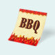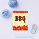 Um modelo de restaurante ou catering personalizado com letras retrô-ocidentais personalizadas e a palavra CHURRASCO em letras flamejantes ocidentais com arte gráfica de chamas vermelhas e laranja na parte inferior da design num fundo de pergaminho faux. O inverso tem espaço para seu nome comercial, informações e muito mais. Personalize-o para adicionar ou remover texto, alterar fontes ou tamanho do folheto, carregar um logotipo e muito mais, até salvar seu design para mais tarde.