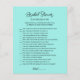 Faça os convidados rirem e se conectarem com este divertido e interativo Jogo de Caça ao Tesouro Desafio de Telefone para Chá de Panela! Com um design elegante em tons de azul-turquesa, este jogo desafia os convidados a completar tarefas baseadas em fotos e mensagens de texto usando seus telefones, perfeito para criar memórias e manter a energia alta na sua celebração. Estas cartas de jogo fazem parte de uma coleção de chá de panela com itens coordenados disponíveis. Nós encorajamos você a explorar o conjunto completo para criar uma celebração perfeitamente combinada.