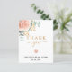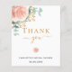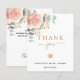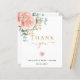 Um cartão de agradecimento de chá de panela moderno e elegante. Um fundo branco chic. Decorado com rosas rosa e dourado, flores e folhas de eucalipto coloridas à mão, raminhos, folhagens e raminhos dourados falsos. Letras pretas e douradas. Na frente o texto: Obrigada, nome e data.