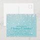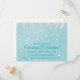 Este Convite de festas de Natal, com tema de inverno, apresenta ícones brancos pendurados no topo do cartão contra um adorável fundo aqua e neve caindo por toda parte. Estes podem ser usados para a festa de Ano Novo, aniversário ou casamento de inverno, aniversário! Todo o texto na frente é editável, então vá em frente e mude a mensagem e o posicionamento da fonte, o estilo, o tamanho e a cor e torne-a sua! Está na hora de planejar para a época de Natal e seus convidados adorarão receber esses ícicles únicos nos Convites de festas de Natal do Aqua de inverno! As placas de papel e os guardanapos jantados neste mesmo design estão disponíveis nesta loja, então por favor, verifique!!!