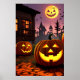 Cidade, abóbora e lua de abóbora | AI Art Poster