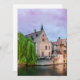 Pintura da cidade antiga de Bruges e da torre de Belfry com céu cor-de-rosa durante o pôr do sol, Bruges, Bélgica.