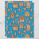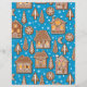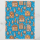 Padrão vetorial desenhado à mão com várias casas de pão de gengibre, árvores de abeto, flocos de neve e biscoitos crescentenários em azul com neve caindo