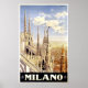 Belo poster de viagens criado por volta de 1920 por Alessandro Pomi, da cidade italiana de Milão, em segundo plano, com detalhes das bonito torres do duomo em primeiro plano. Imagem disponível em vários presentes e produtos.