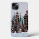 Renderização em 3D de uma cidade futurista de ficção científica em um fundo de cinza