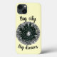 Grande Cidade - Grandes Sonhos. Cidade panorâmica em preto e branco sob a Lua. Você pode escolher e editar TEXT neste item