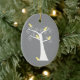 Cinco adoráveis pássaros abstrato-amarelos saem em uma árvore branca contra um fundo de cinza em um ornamento