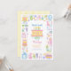 Bolo amarelo de 5 de aniversário e rosa com flores e espirais cor-de-rosa. O número 5 é acrescentado aos bolos e presentes em toda a design fronteiriça. Personalize o nome em um roteiro casual cor-de-rosa para destacar a doce aniversariante de cinco anos.