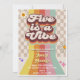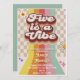 Celebre seu Convite: Cinco é uma Descrição de Aniversário do Vibe 5: Convite de 5 com inspiração retroativa com um tema da margarida do arco-íris Features: Hippie style arco-íris, daisies, e boho fonts and color