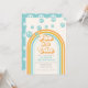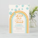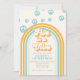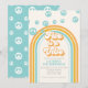 Cinco é um convite de aniversário de 5 anos inspirado no retro com fontes e cores estilo anos 70.