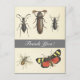 A frente deste obrigado de estilo de vintage que você coloca no cartão postal apresenta a mensagem apreciativa "Obrigado!" em um script como texto, junto com uma representação de cinco insetos. O verso apresenta uma mensagem personalizada de gratidão. Um postal como este poderia ser usado para expressar gratidão por algo especial que alguém fez.