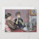 Cinco O'Clock Tea (1880), de Mary Cassatt, retrata duas mulheres elegantemente vestidas, desfrutando de um chá de tarde em um cenário silencioso e refinado. A pintura destaca a atenção de Cassatt aos detalhes e seu hábil uso da luz e da sombra para criar um sentido de intimidade e realismo. A composição captura os costumes sociais da época, mostrando o fascínio da artista pelos papéis femininos na vida doméstica e social. Use as ferramentas de design para adicionar texto personalizado ou personalizar a imagem.