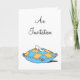 Cartões de convite elegantes e personalizáveis com arte vintage da sandália de vidro da Cinderela em uma almofada laranja e azul turquesa com letras cursivas que podem ser personalizadas por você, o interior deste cartão é revestido em laranja correspondente.