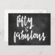 NewParkLane - Cartão-postal moderno preto e branco, com citação divertida 'Cinquenta & Fabuloso' em uma tipografia de roteiro da moda, contra um fundo de quadro-negro.