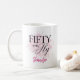 Um presente de 50º aniversário de caneca de café peronalizada. Um presente perfeito para uma quinquagésima festa de aniversário. Surpreenda alguém que tem 50 anos e voe! Você pode personalizá-lo com o nome da aniversariante. Faça alguém sorrir! Aproveite!
