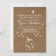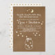 O convite rústico do chá de fraldas dos casais com um fundo do papel marrom decorou com um frasco de pedreiro cercado por estrelas amarelas da cintilação e por uma lua.