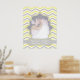 Impressão de poster do casamento com cinza de festas amarelas modernas. Um design de zague na moda a ziguezague usando as listras clássicas com contemporâneo mas vintage parecem de certo modo. Há um quadro no centro com sua foto e sob ela seus nomes. Você pode alterar o plano de fundo e a cor do texto escolhendo entre mais de 200 cores do gráfico de cores do Zazzle. Elegante, classe e na moda design.