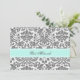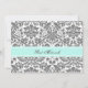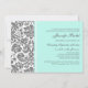 convites de festas do Bat Mitzvah personalizados em azul-azul-turquesa elegante, cinza e cor damasco floral clássica branca. Adicione seu nome e detalhes da festa para um convite de festas exclusivo e na moda Bat Mitzvah.