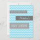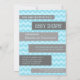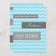 Convites personalizados para chuveiros de bebês em elegantes e modernos padrões de stripes aqua azul-claro, cinza de carvão negro e trama branca retro chevron zigzags. Personalizável com seu texto, entre em contato conosco para solicitar uma alteração de cor.