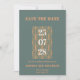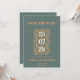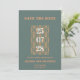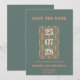 Cinza Azul Moderno e Terracotta Salvem o Cartão de Data Um casamento moderno Salve a Data com um design de na moda e um elegante roteiro branco e terracotta. Os nomes de cores exatos são Cutty Sark (cinzas azuladas) e Raw Sienna (terracotta). Personalize com os detalhes do evento.