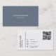 Simples cartão de visita de código QR preto corporativo personalizado em um estilo moderno minimalista. O modelo pode ser atualizado facilmente com seu código QR e informações de contato. O lado frontal é cinza azul, o lado traseiro é branco