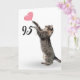 Cinza de gato com balão de coração cor-de-rosa para 95 anos em fundo branco. A cor de fundo pode ser alterada