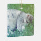 Este gato bonitinho adora o ornamento da árvore de Natal tem uma foto adorável de uma cinza e um gato branco brincando de esconde-esconde na grama. Substitua a foto pela sua própria foto, adicione texto sem custo ou deixe-a como está.